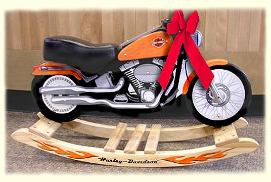 I touched the handlebars and the small wooden motorbike dipped forwards then back. “I think it might be a bit small for me, love,” I said after a few moments following the motion of the rocking Harley.