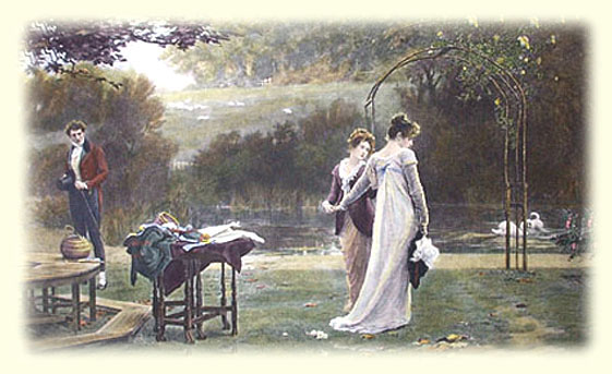 Darcy stood, seemingly at ease as he fiddled with a signet ring on his right hand; giving the impression that he was trying to hide his nervousness. “That is true. Business with my Steward occasioned my coming forward a few hours before the rest of my party.” He looked up at Miranda, and added in a more normal voice, “Can you imagine how Darcy must be feeling at this point? I know he was tongue-tied and awkward the first time he met her in the garden, but even so ... he must have been so aroused, knowing that the woman he loved was within the boundaries of his property.”